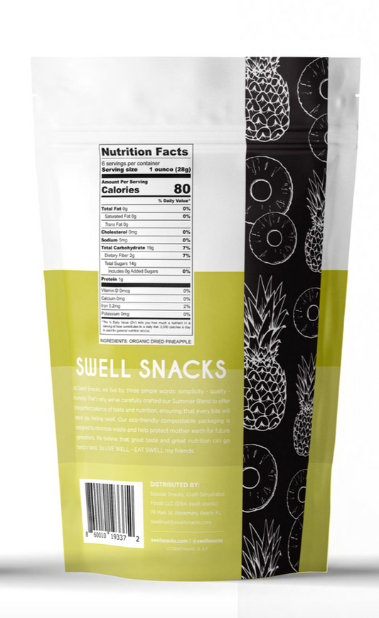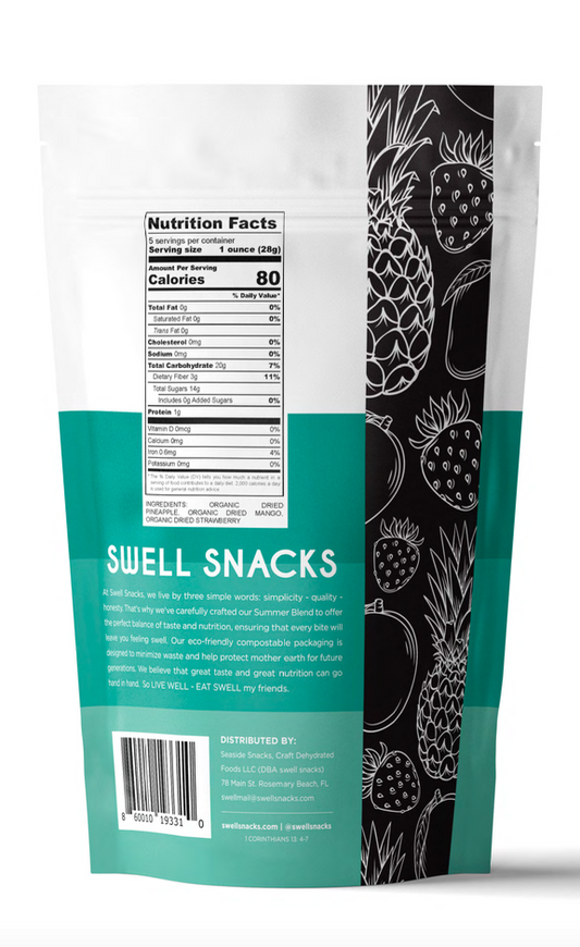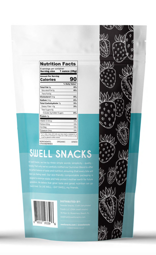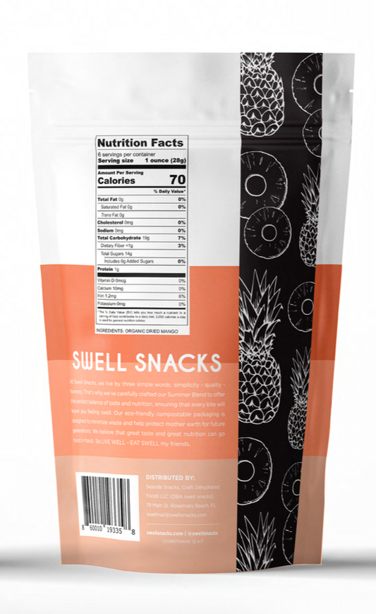 "Our mission at Swell Snacks is to provide delicious and nutritious dehydrated snack foods while championing sustainability every step of the way. We are committed to sourcing the finest quality ingredients from environmentally responsible suppliers, minimizing our carbon footprint through innovative production methods, and reducing waste through efficient packaging and distribution practices. Our goal is to nourish both people and planet, offering wholesome snacks that satisfy cravings while promoting a healthier, more sustainable future for generations to come."